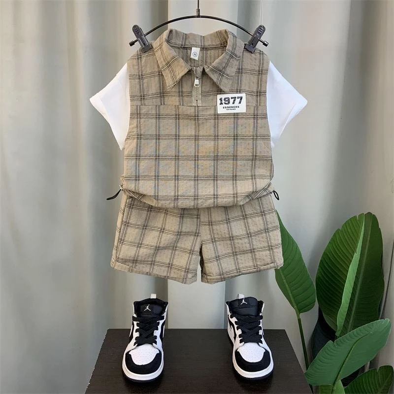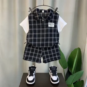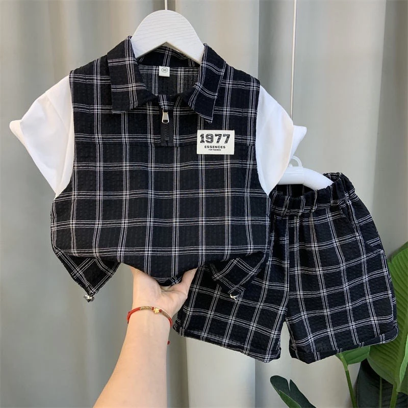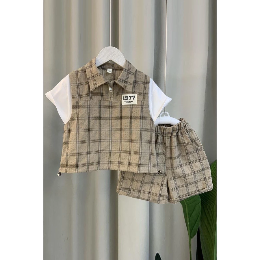 Sản phẩm: Set gồm 1 áo Polo kéo khóa + 1 quần short caro.